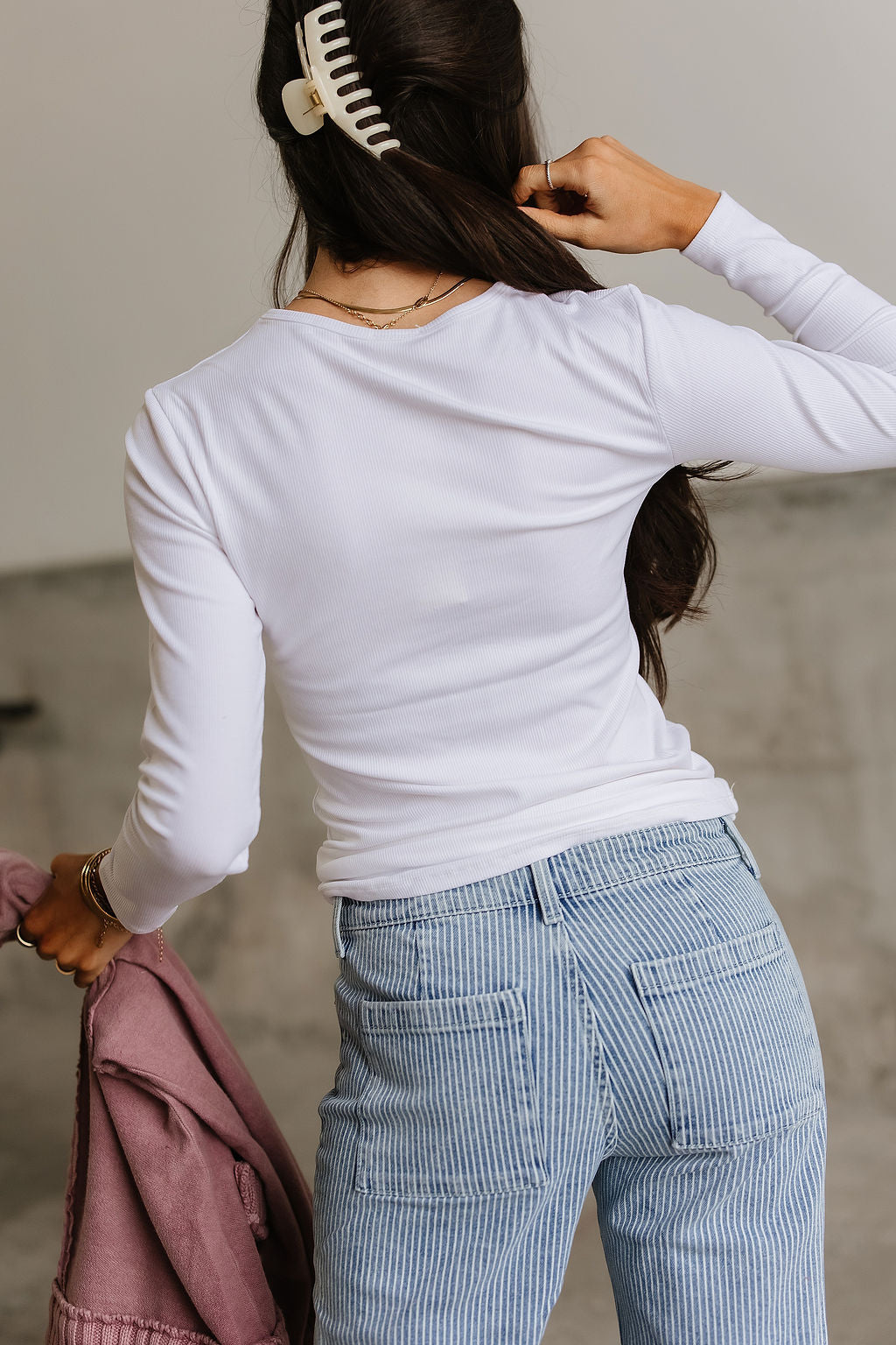Sleek, simple, and irresistibly soft this Top is like you are wearing a Second Skin. This long sleeve top is your new layering essential. Made from a fine ribbed Fabric, this fitted silhouette hugs the body just right while offering breathable comfort and subtle stretch. The crew neckline and long sleeves keep it classic and modern. Wear it solo for a clean look or layer it under jackets and cardigans for effortless style year-round.