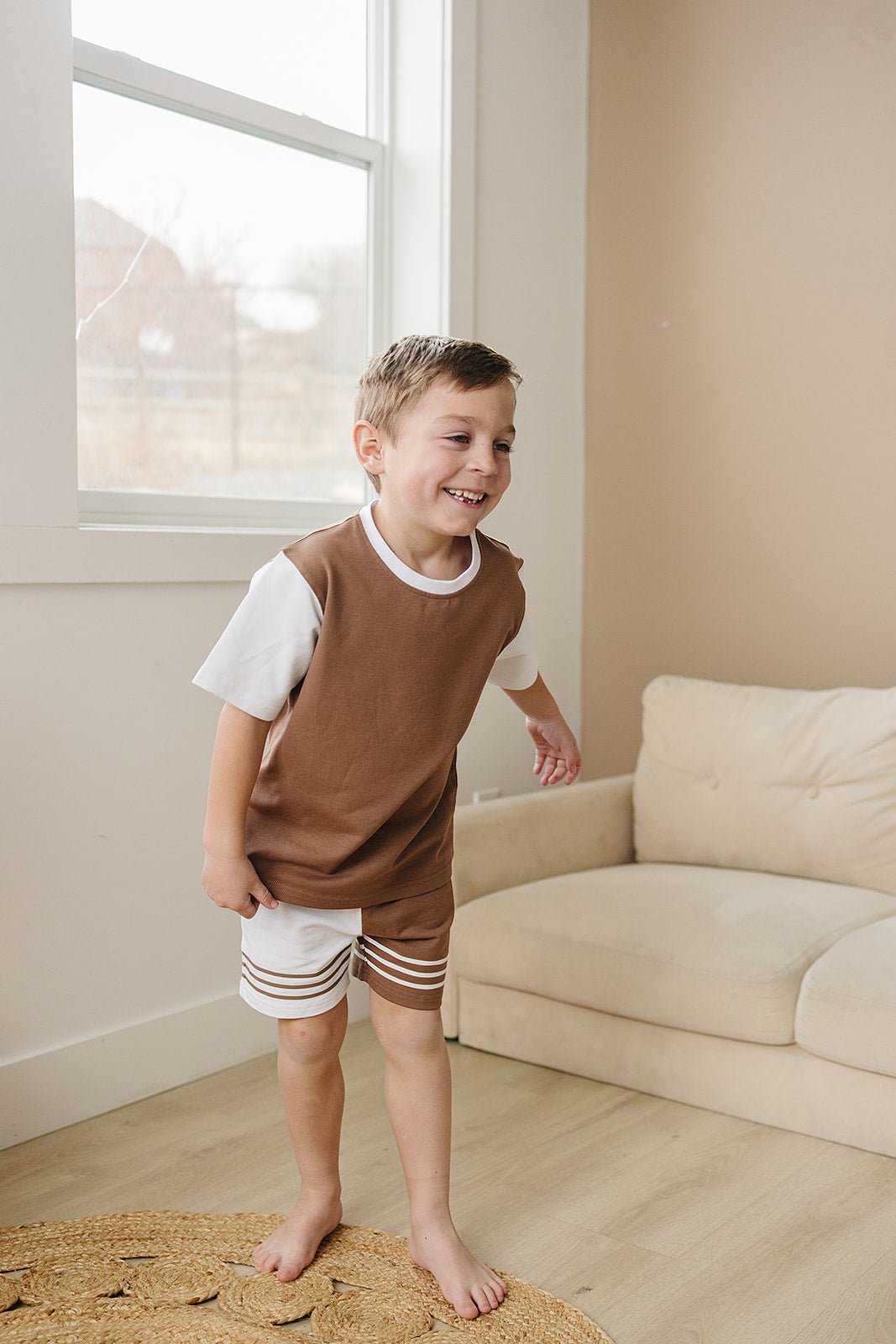 Get your little one ready for a day of fun with the Ari Set. Featuring color block sleeves and shorts with contrasting stripes, this set is made from soft and lightweight material perfect for hot summer days. Your little one will be the star of the show in this eye-catching outfit!