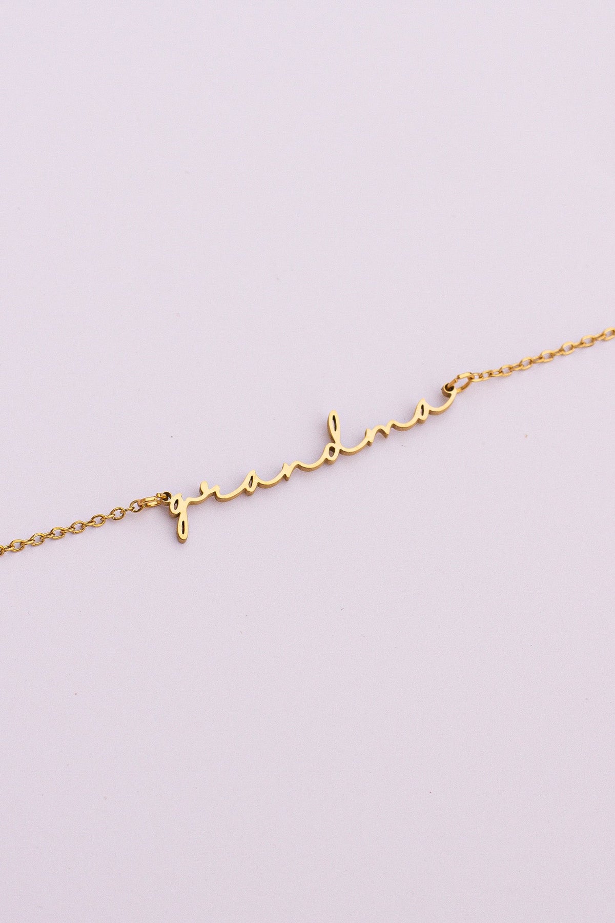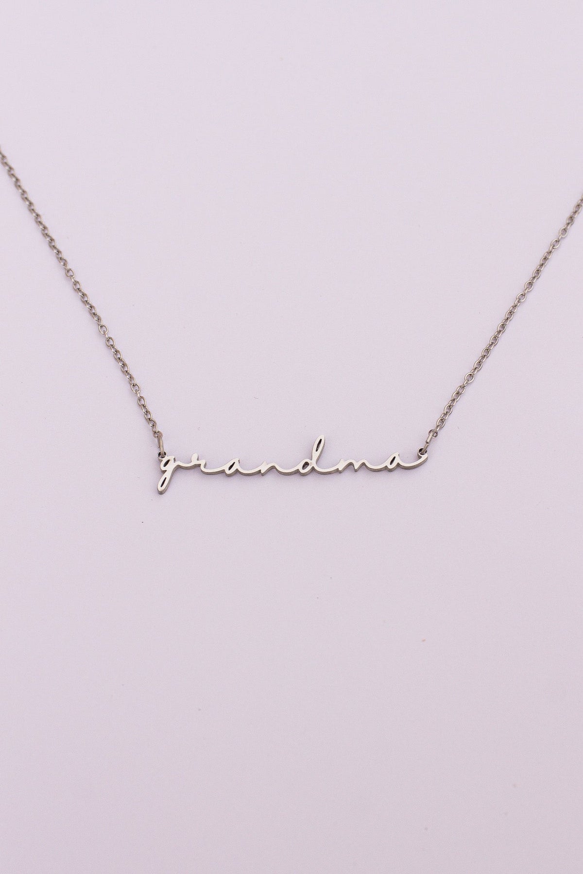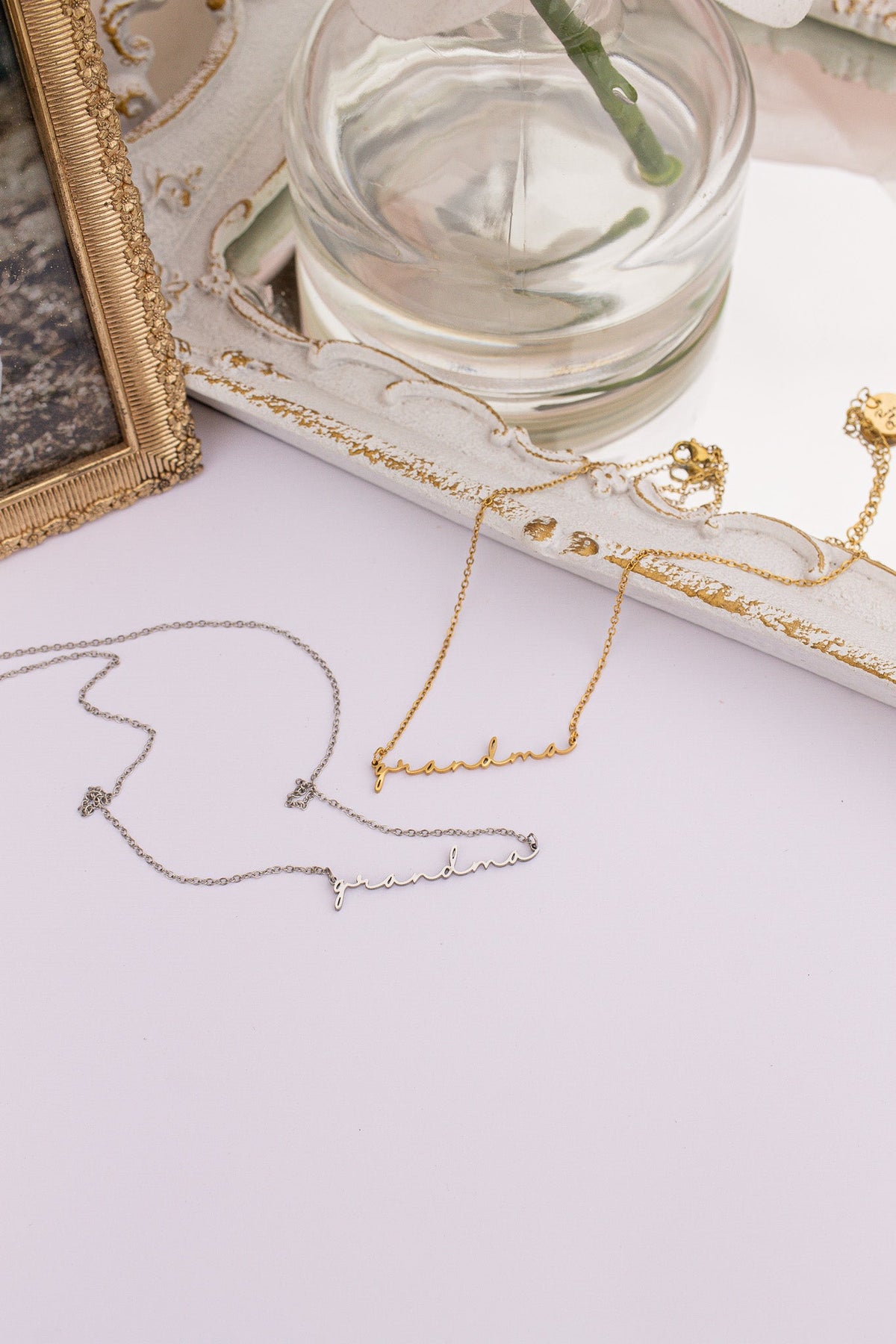 • Cursive Grandma Name Necklace - Designed in our Branded Rose and Clay Font