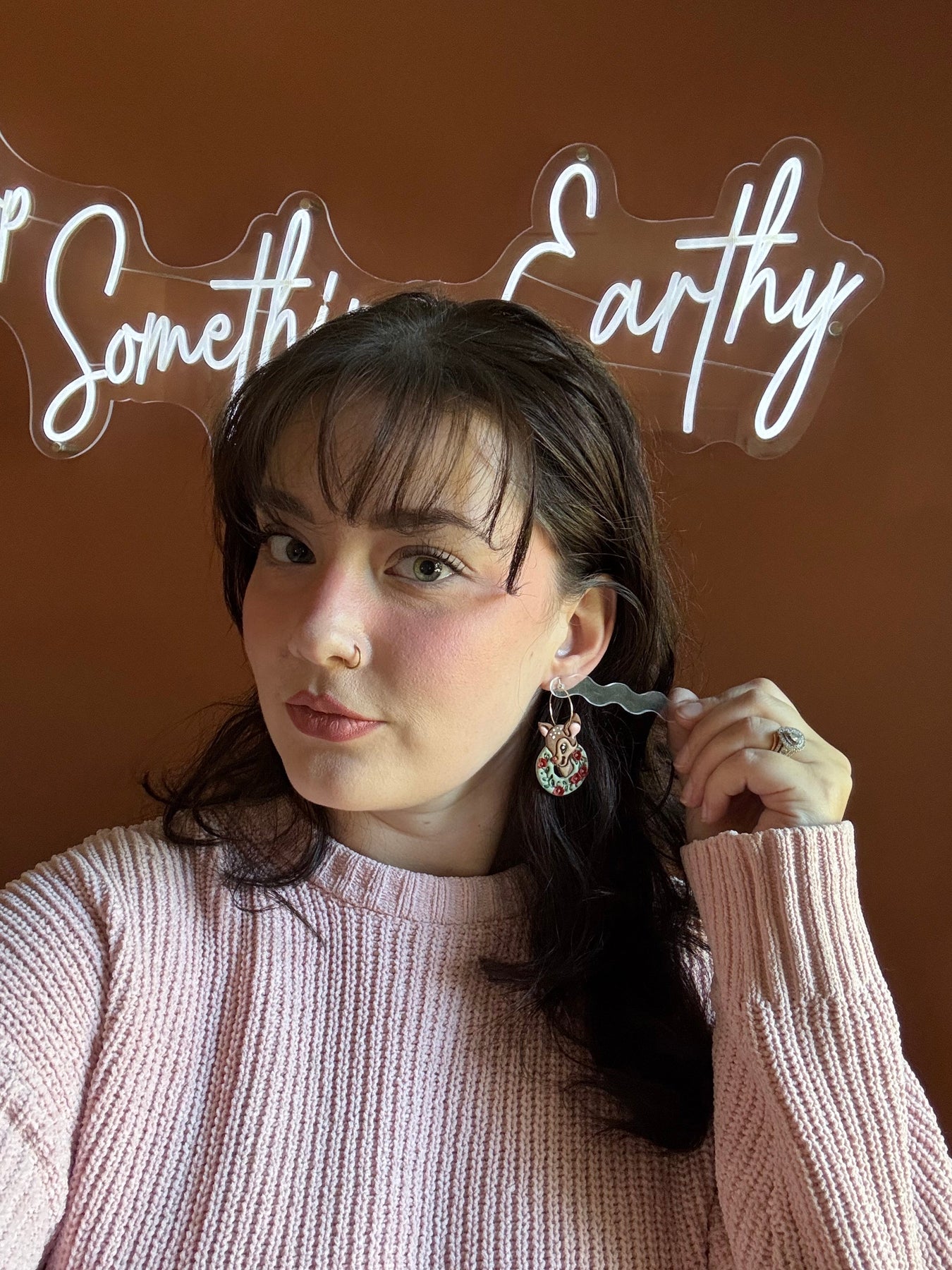 Earrings are made of polymer clay and hardware is 14k gold plated - nickel free. Each piece is rolled, cut, baked, sanded and assembled by hand, so sizes and custom-mixed colors will vary per piece. Due to the handmade nature of my pieces, slight imperfections are inevitable. Every piece is truly one of a kind.